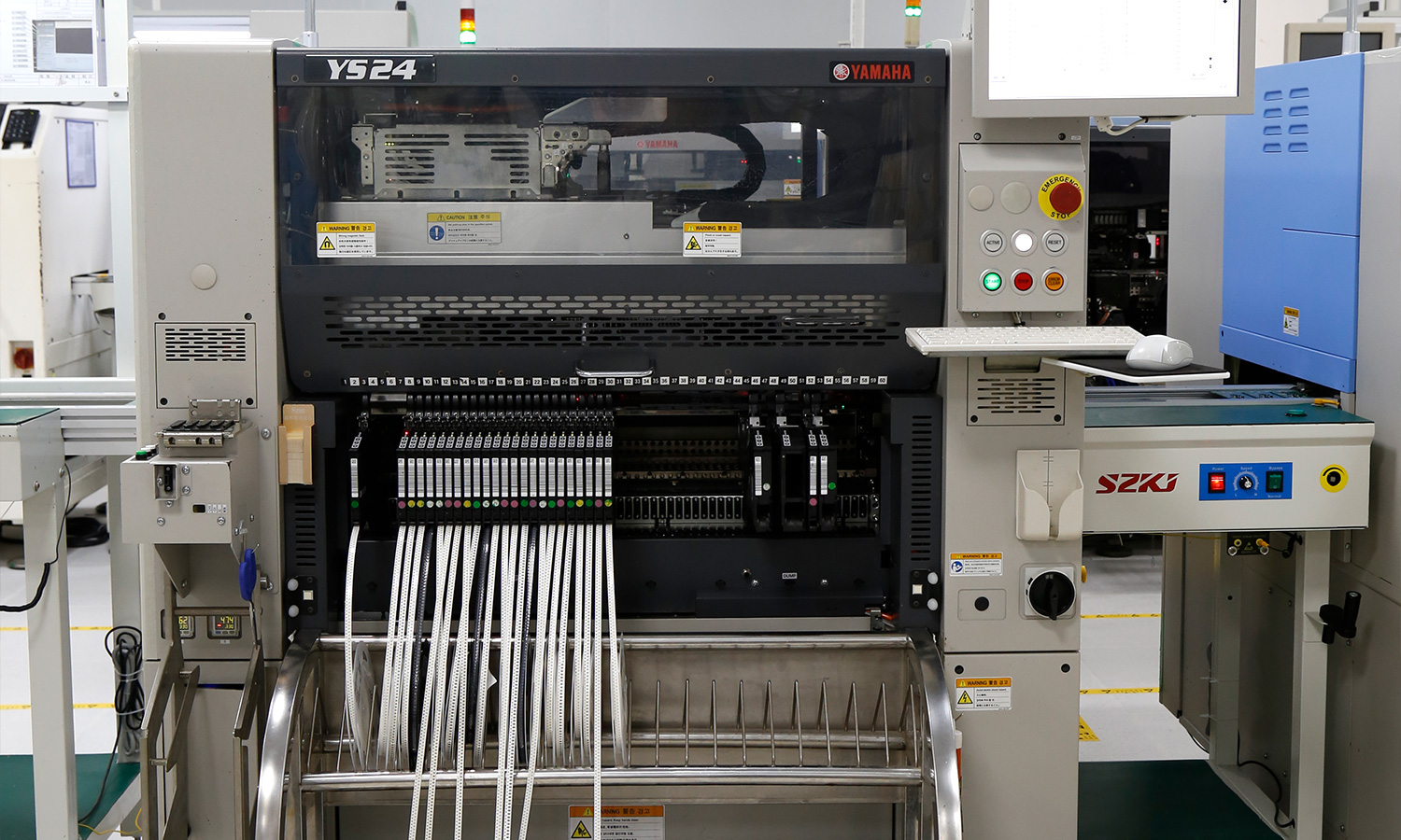 现有4条SMT贴片生产线,配备全新进口YAMAHA,YSM20R YSM10 YS24 YS12 、全自动锡膏印刷机、十温区回流炉、AOI、SPI等高端设备,贴装产能1200万点(CPH)/天,尤其擅长高精密、复杂度高的板子。